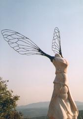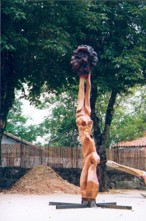 Sculptures2 la dame blanchemarbre et bronzehauteur 3m50 totem boisfait en orme et teinté sculpture metalliquela geodame